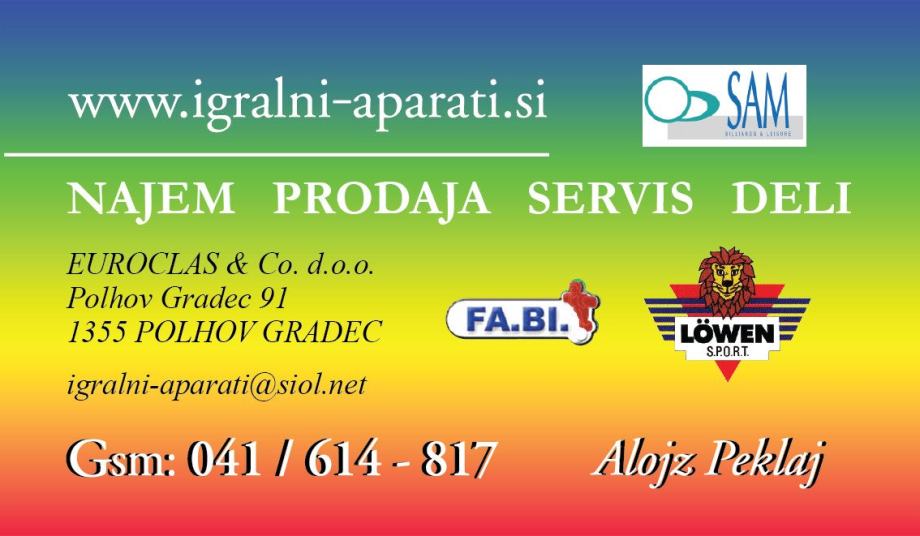 PRODAJA - NAJEM - SERVIS - REZERVNI DELI - IZPOSOJA / IGRALNI APARATI / IGRALNI AVTOMATI