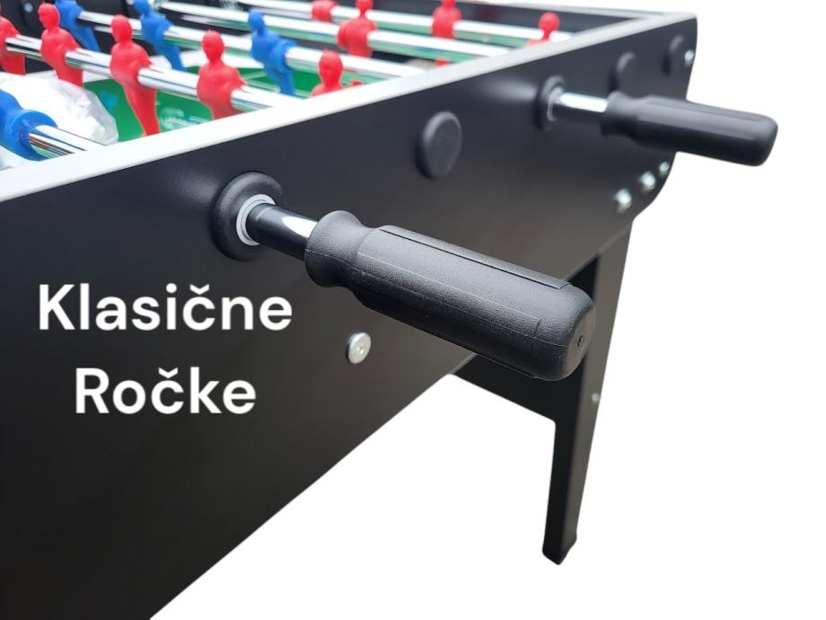 * Noge iz masivnega kompaktne plošče lesa, prekrite z laminatom v črni barvi in dodatno prečko za stabilnost nogometa. Na stopalih nog guma za boljši oprijem z podlago.