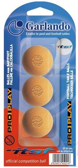 Žogice za igranje ročnega nogometa Garlando Pro-Play, uradne žogice za Mednarodno federacijo za namizni nogomet (ITSF). Primerne za izkušene igralce. nbsp;V paketu prejmete 3 kose.Premer: 34mm
