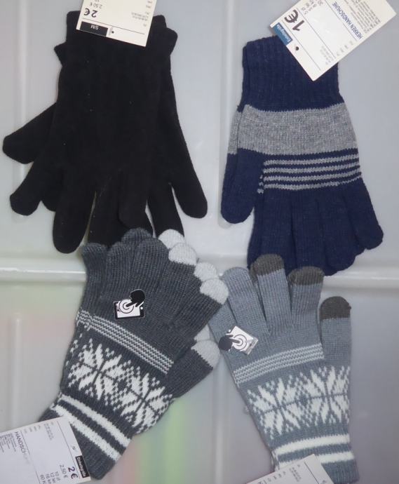 - temno sive z vzorci, uni velikost, primerne za uporabo pametnih telefonov, stale so 2,5€, prodamo za 1€.