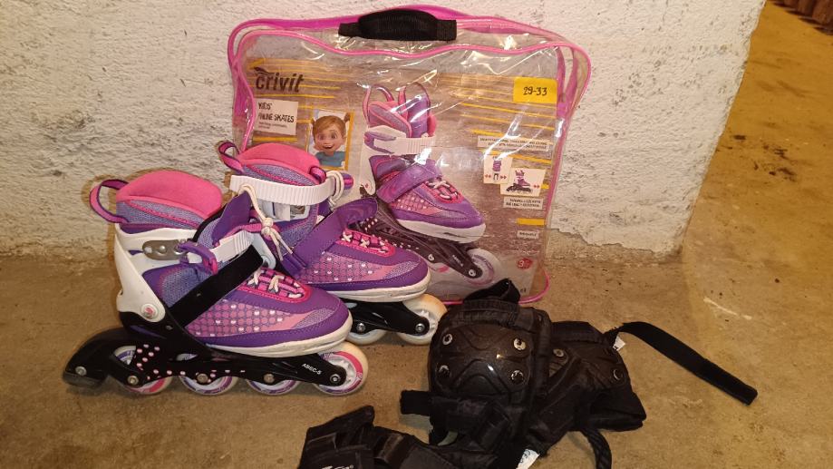 Prodam ohranjeme otroške rolarje nastavljive velikosti od 29 do 33. Zraven dodajamo tudi komplet ščitnikov.