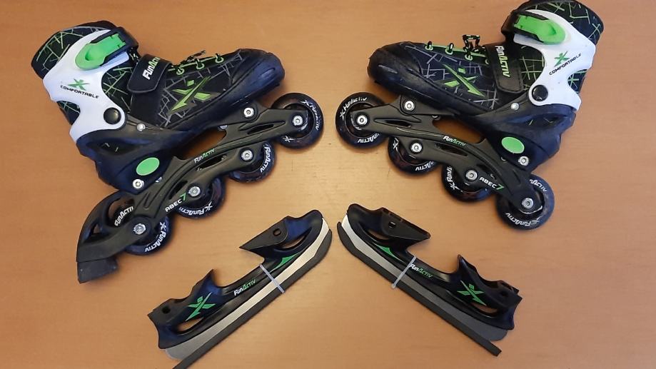 Prodam otroške rolerje, kateri so lahko tudi drsalke. Nastavki za drsanje so priloženi. Rolerji so tudi nastavljivi po velikosti 30-33.