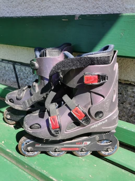 Pridam Alpina vijolične rolerje, na parih koncih odrgnjene, vendar še vedno vozne.