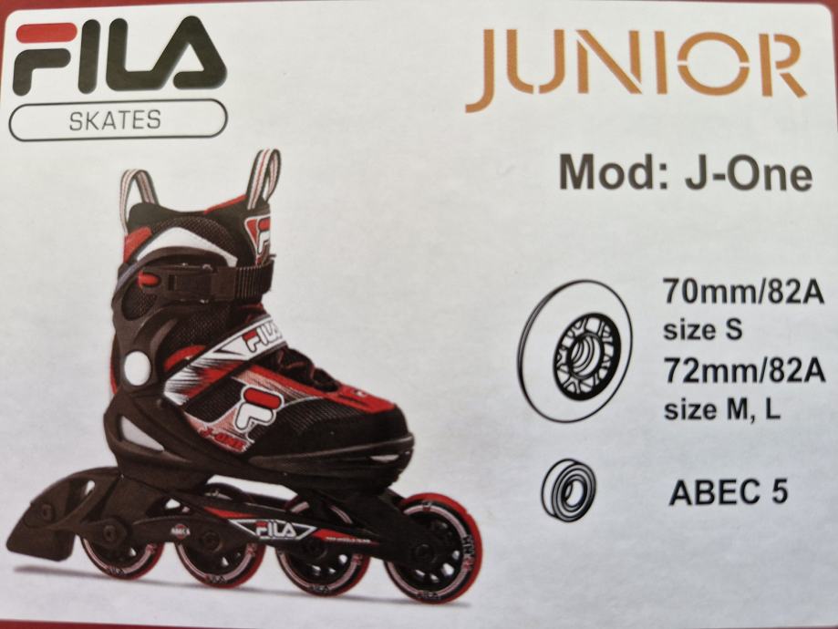 Prodam skoraj nerabljene, odlično ohranjene rolerje FILA, št. 32-36 (junior line J ONE, ABEC5), v originalni embalaži. Zraven dodam še vse ščitnike Powerslide, velikost "S". Dol pri Ljubljani, tel. št. 041/894-303. Cena: 45€.