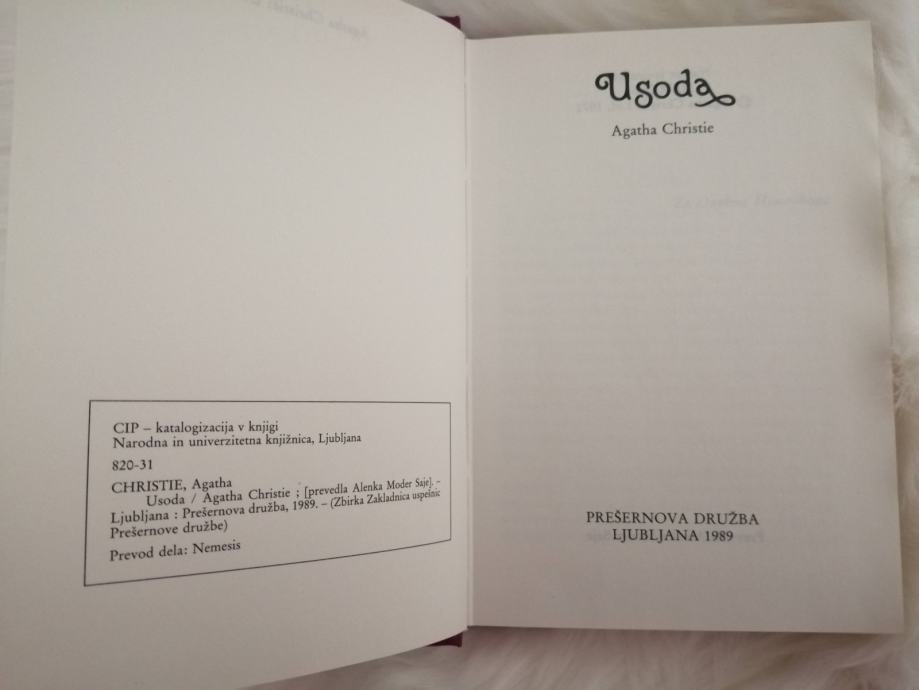 Agatha Christie: Usoda (Nemesis). Prevedla Alenka Moder Saje. Prešernova družba 1989. Trda vezava. Cena: 8 €