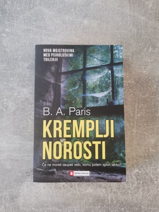 Prodam psihološki triler z naslovom Kremplji norosti, avtorice B. A. Paris.