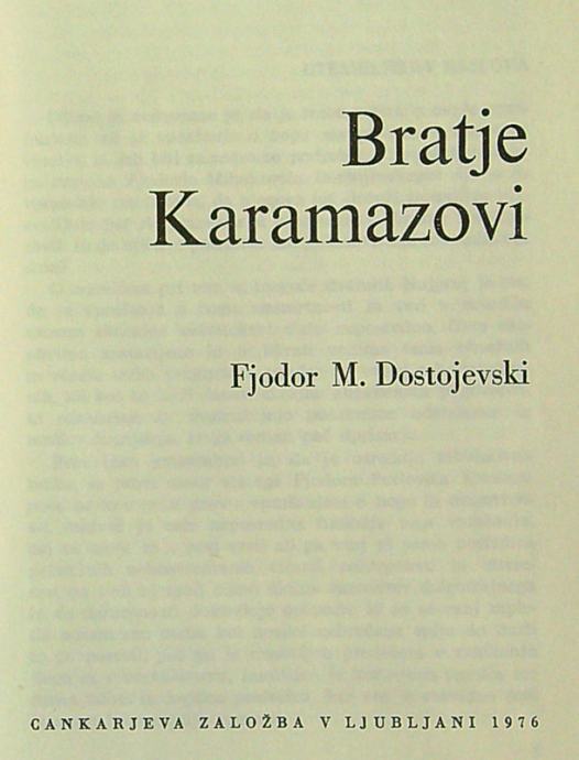BRATJE KARAMAZOVI (1-3), Fjodor. M. Dostojevski