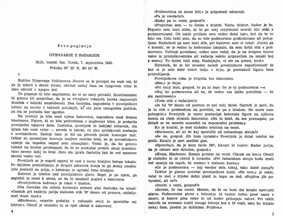 Tisti, ki nimajo izkušenj v boju proti podmornicam, bodo morda mnenja, da je zgodba »predobra, da bi bila resnična«. Odgovoril bi jim, da preprosto ne morejo vedeti, kakšen je tak boj, kajti kolikor jaz vem, noben angleški rušilec iz spremljevalnega ladjevja na zahodni obali nikoli ni bil v daljšem, samostojnem boju z nemško podmornico.