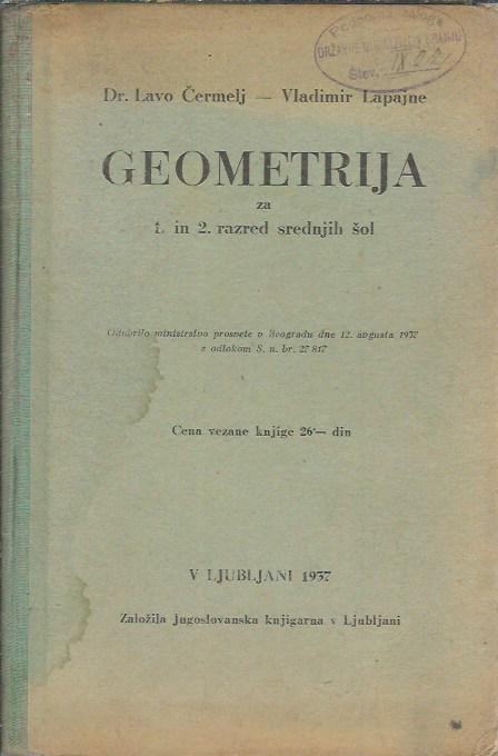 Naslov Geometrija za prvi in drugi razred srednjih šol / priredila Lavo Čermelj, Vladimir Lapajne