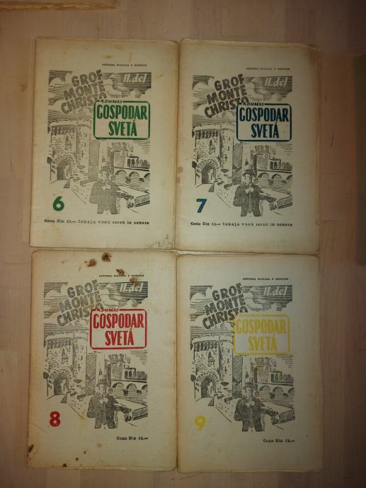Na voljo je 16 knjižic 2.knjige francoskega pisatelja Dumasa o samooklicanem grofu Monte Christu iz leta 1953. Knjižice so izhajale dvakrat tedensko.