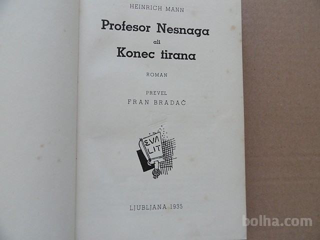 Knjiga PROFESOR NESNAGA ALI KONEC TIRANA, HEINRICH MANN, EVALIT LJUBLJANA 1935, trde platnice, lepo ohranjena.