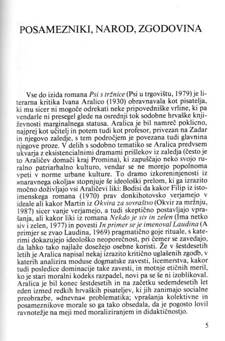 Ivan Aralica je danes središčna osebnost sodobne hrvaške književnosti. Romanopisec, ki ceni tako slogovno virtuoznost kakor dobro zgodbo; mojster, ki slika na moč zanimive značaje in čudežne simbolne podobe; mislec, ki z globoko modrostjo oživlja preteklost zgodovine in z njo govori o današnji usodi posameznika in naroda. Duše sužnjev, roman, ki smo ga izbrali po avtorjevi želji, je nastal leta 1984 in sodi med najboljša dela današnjih jugoslovanskih književnosti.