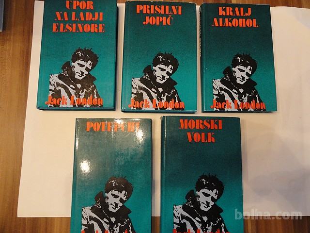 Knjige ZBIRKA 5 KNJIG ( 1 KRALJ ALKOHOL, 2 MORSKI VOLK, 3 POTEPUHI, 4 PRISILNI JOPIČ, 5 UPOR NA LADJI ELSINORE), JACK LONDON, MK 1975, trde platnice, lepo ohranjene, v kompletu.