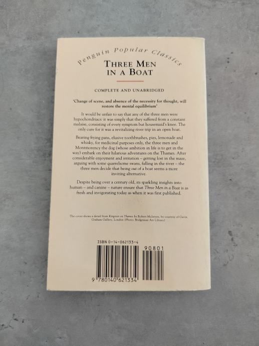 Martyrs to hypochondria and general seediness, J. and his friends George and Harris decide that a jaunt up the Thames would suit them to a 'T'. But when they set off, they can hardly predict the troubles that lie ahead with tow-ropes, unreliable weather forecasts and tins of pineapple chunks - not to mention the devastation left in the wake of J.'s small fox-terrier Montmorency. Three Men in a Boat was an instant success when it appeared in 1889, and, with its benign escapism, authorial discursions and wonderful evocation of the late-Victorian 'clerking classes', it hilariously captured the spirit of its age.
