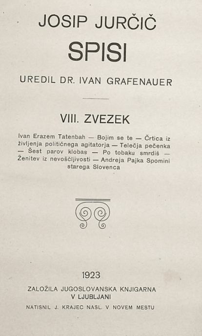 JOSIP JURČIČ; SPISI (VIII. zvezek)