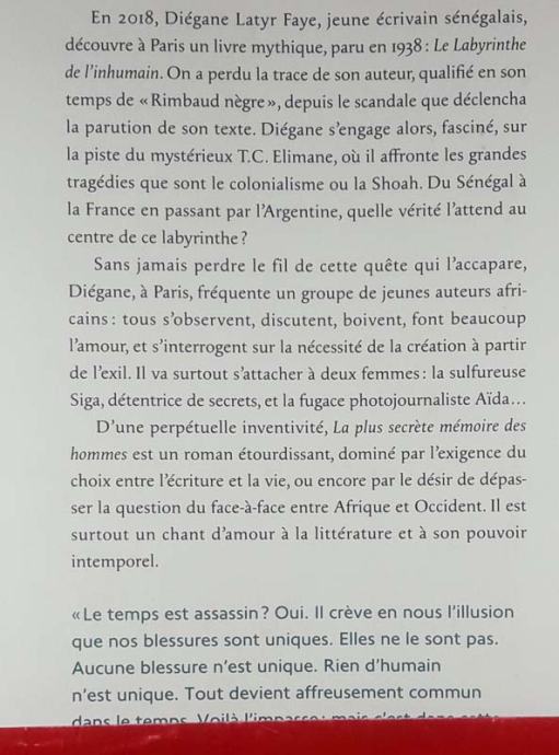 LA PLUS SECRÈTE MÉMOIRE DES HOMMES, Mohamed Mbougar Sarr