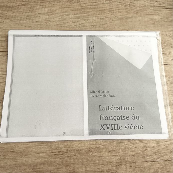 * LITTÉRATURE FRANÇAISE DU XVIIIE SIÈCLE (Francoska književnost 18. stoletja - francoščina), avtor Michel Delon in Pierre Malandain, Presses Universitaires de France, s prilogo LITTÉRATURES DE LA FRANCE MÉDIÉVALE (Literatura srednjeveške Francije v francoskem jeziku), prof. M. Michel Zink (Cena: 5 eur)