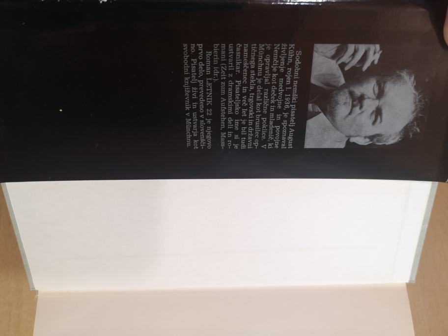Fotografija avtorja s kratkim opisom vsebine romana na zavihku