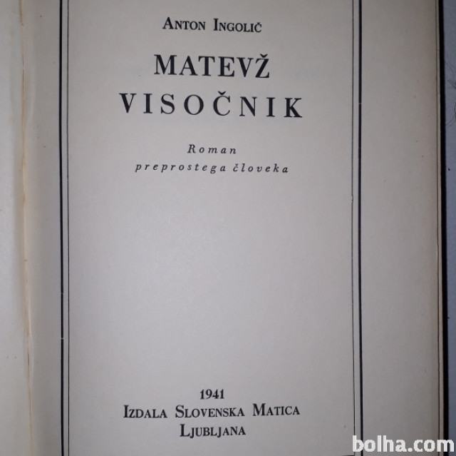 Roman preprostega človeka. 303 strani, letnik 1941. Izdala Slovenska matica.