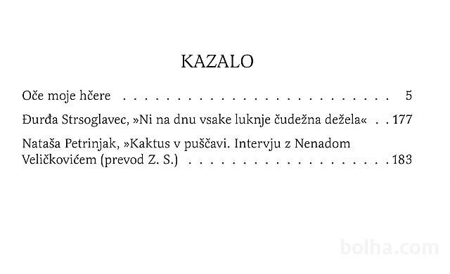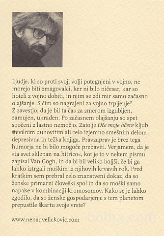 Oče moje hčere je nadaljevanje Gostačev, antimilitarističnega romana, ki je imel velik uspeh celo med slovensko srednješolsko mladino. Dogajanje je postavljeno v povojno Sarajevo, v katerem si ljudje še vedno ližejo vojne rane: v mestu vlada depresija, družine razpadajo, služb ni, ljudje si pomagajo, kako vejo in znajo. Avtor z zanimivim modernističnim prijemom vodi svoje like skozi sarajevski vsakdan. Odličen je v slikanju moreče atmosfere, ki prežema sodobni čas.