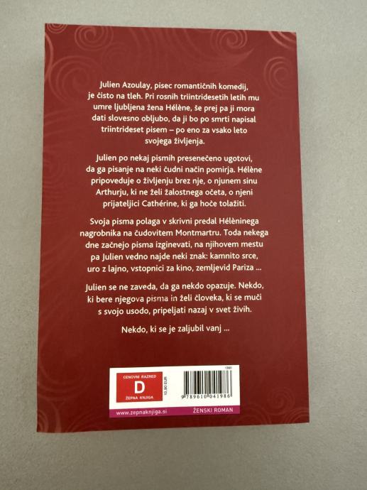Julien Azoulay, pisec romantičnih komedij, je čisto na tleh. Pri rosnih triintridesetih letih mu umre ljubljena žena Hélène, še prej pa ji mora dati slovesno obljubo, da ji bo po smrti napisal triintrideset pisem – po eno za vsako leto svojega življenja.