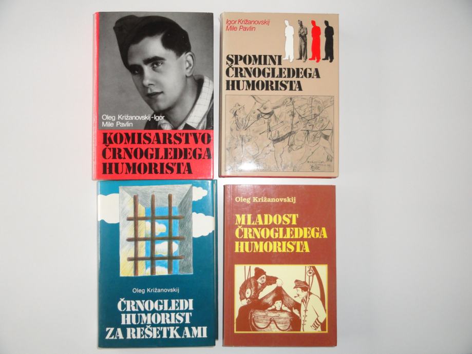 Knjige OLEG KRIŽANOVSKIJ, 4 KNJIGE (MLADOST ČRNOGLEDEGA HUMORISTA, KOMISARSTVO ČRNOGLEDEGA HUMORISTA, SPOMINI ČRNOGLEDEGA HUMORISTA, ČRNOGLEDI HUMORIST ZA REŠETKAMI), trde platnice, dobro ohranjene, v kompletu 4 knjige za 20 eur. Možnost tudi nakupa posamezne knjige, cena 5 eur za knjigo.