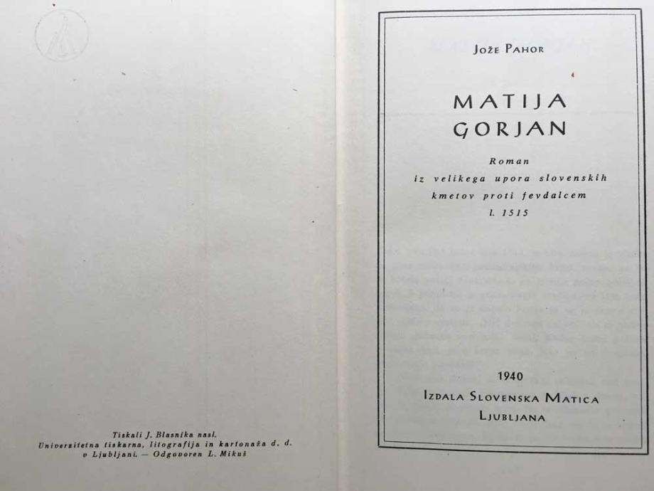 Matija Gorjan : roman iz velikega upora slovenskih kmetov proti fevdalcem l. 1515