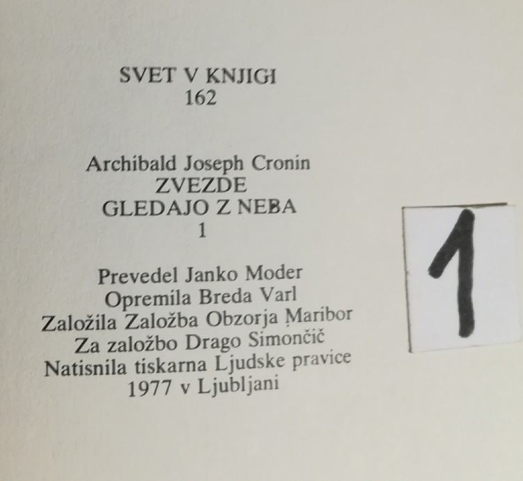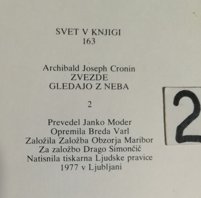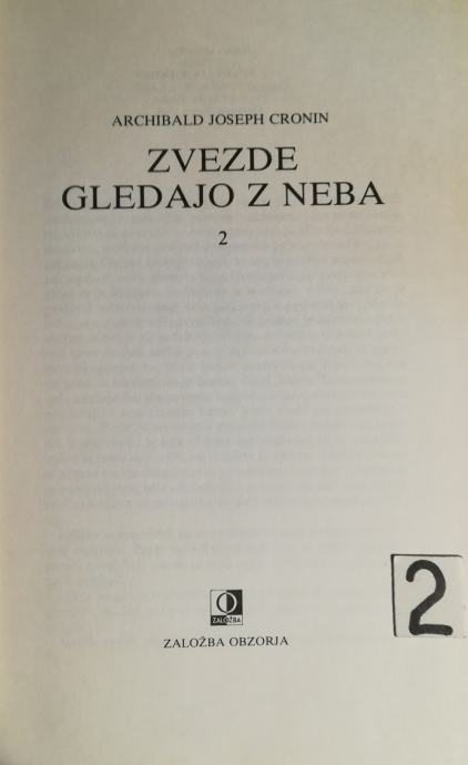 2. Knjiga : "Zvezde gledajo z neba" (1. in 2. del) - Archibald Joseph Cronin
