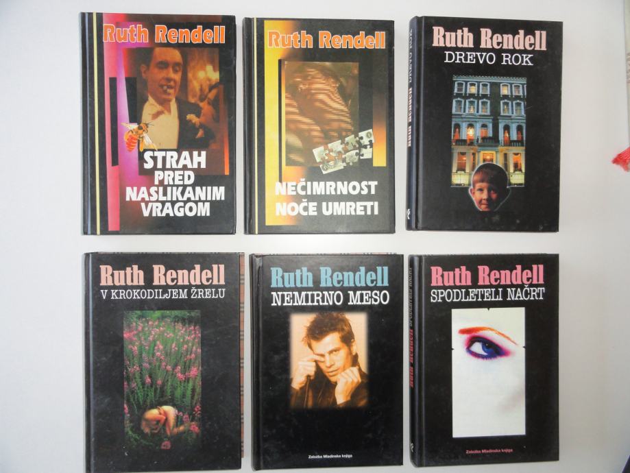 Knjige LEPOSLOVJE, ROMANI, RUTH RENDELL, 6 KNJIG, naslovi vidni iz slike, trde platnice, dobro ohranjene, samo v kompletu.