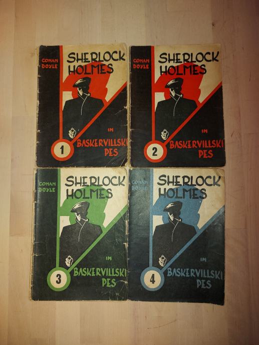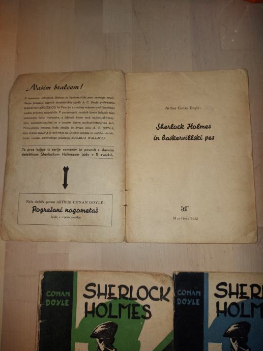 Napeta detektivka znanega angleškega pisatelja o svetovno znanem detektivu Sherlocku Holmesu, izdana v petih zvezkih Zabavne knjižnice iz leta 1952.