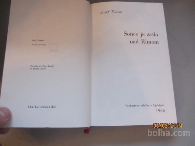 7078.)SONCE JE ZAŠL NAD RIMOM - JOSEF TOMAN , KNJIGA JE ZELO LEPO OHRANJENI PRIMIRNI ZA DARILO, PRI NAKUPU 10 KNJIG PODARIM POŠTNINO