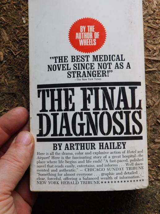 Knjižna uspešnica znanega avtorja Arthura Hailyija THE FINAL DIAGNOSIS. Knjiga v angleškem jeziku, že 39 izdaja romana, leto 1979. Posvetilo lastniku in njegov pečat v knjigi, drugače odlično ohranjena.