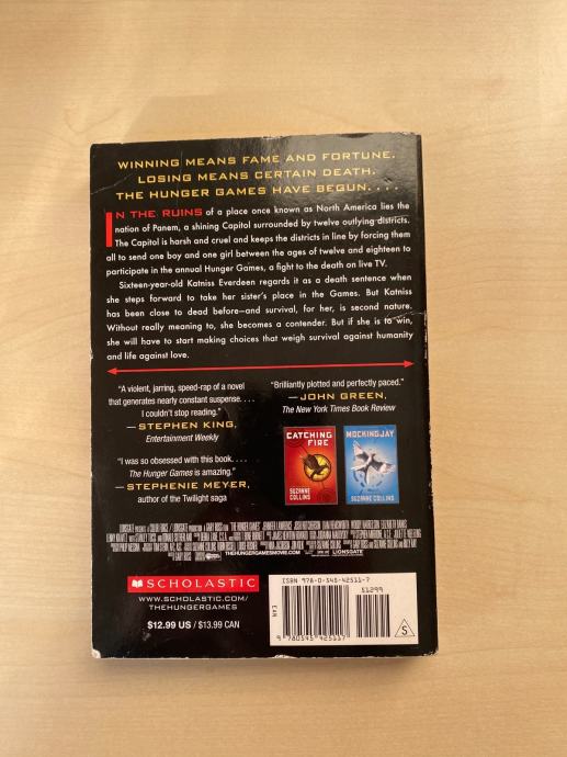 Prodam odlično ohranjeno knjigo Hunges games. Možno je tudi pošiljanje po pošti. Stroške poštnine (2,38€) v tem primeru krije kupec.