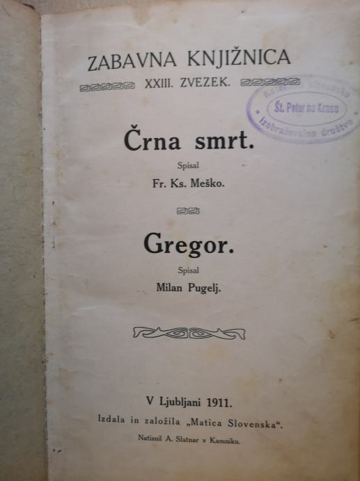 Črna smrt / Fr. Ks. Meško. Gregor / Milan Pugelj, 1911