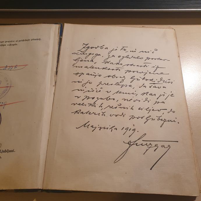 Prodam zanimivo izdajo Finžgarjeve Verige, gledališke igre v treh dejanjih izdano leta 1919. Knjiga je zanimiva za zbiralce zaradi Finžgarjevega rokopisa na prvi strani (glej sliko). Telefon 041 737 993.