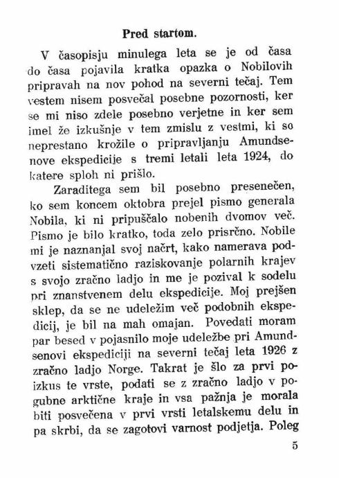 O polarni ekspediciji generala U. Nobila je bilo v zadnjih mesecih toliko pisanja in poročila so si medseboj večkrat tako nasprotovala, da je bilo težko, posneti iz njih pravo lice tega tragičnega pohoda. Kot znanstveni sodelavec ekspedicije sem imel priložnost, da sem se udeleževal pripravljalnih del, poleta iz Milana do Kraljevega zaliva in potem poleta na tečaj, ki je končal s katastrofo in našim sedemtedenskim, bivanjem na ledeni plošči.