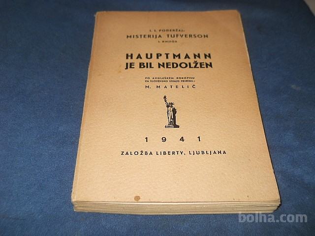 Hauptmann je bil nedolžen,avtorica Misterija Tufverson,za slovensko izdajo priredil M.Matelič,založba Liberty,Ljubljana 1941 letnik,knjiga ima 291 strani,pošljem po pošti ali osebni prevzem.