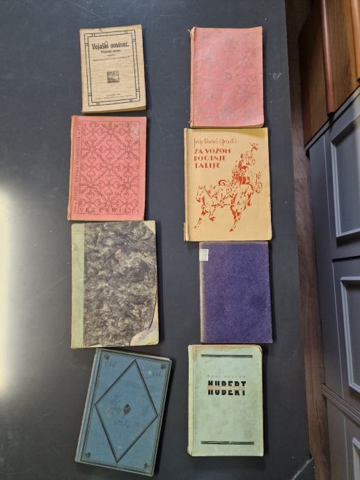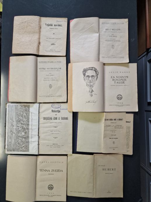 Prodam stare knjige, naslovi, avtorji in datumi izdaje so razvidni iz fotografij. Cena 5 eur ena knjiga.