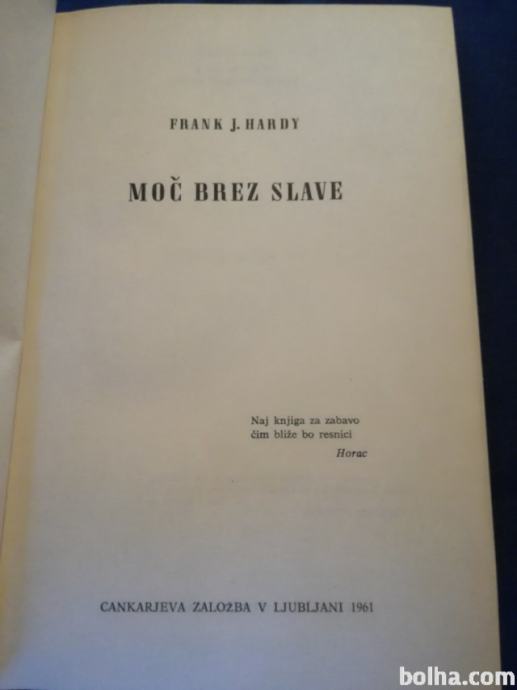 Moč brez slave,avtor Frank J.Hardy,Cankarjeva založba v Ljubljani 1961 letnik,knjiga ima 647 strani,pošljem po pošti ali osebni prevzem.