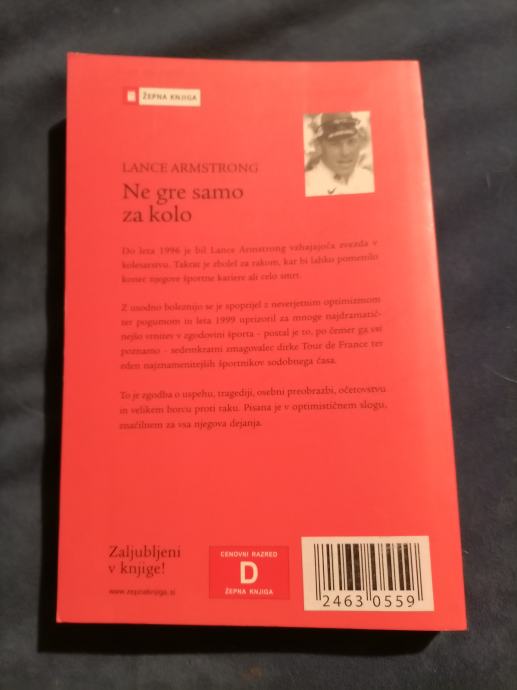 ne gre samo za kolo/moja vrnitev v življenje,avtorja Lance Armstrong in Sally Jenkins,uvila international 2006 letnik, knjiga ima 288 strani, pošljem po pošti ali osebni prevzem.Knjiga je v zaboju pod zaporedno številko 68.