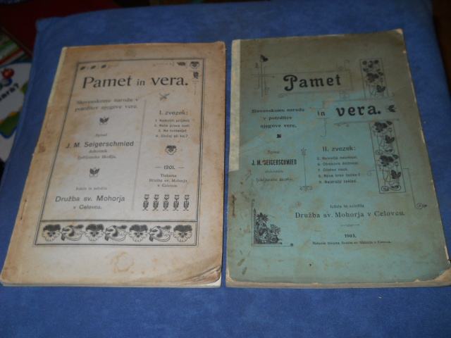 Pamet in vera(1+2 zvezek),spisal J.M.Seigerscchmied(duhovnik Ljubljanske škofije),izdala in založila Družba sv.Mohorja v Celovcu,letnik 1901,cena je 20 eur za oba zvezka skupaj,pošljem po pošti ali osebni prevzem.