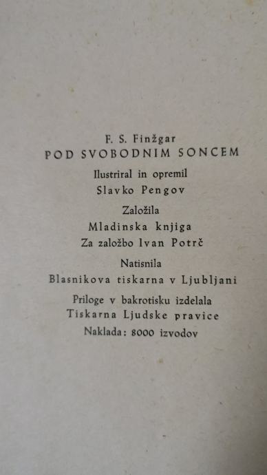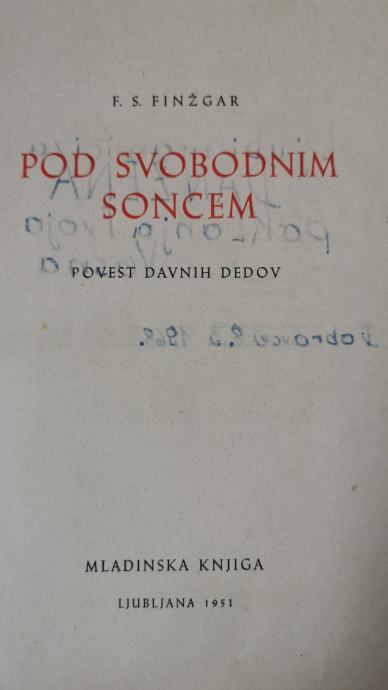 POD SVOBODNIM SONCEM, Finžgar, 1951, naprodaj