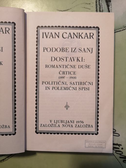 Naslov Podobe iz sanj ; Dostavki: Romantične duše ; Črtice : (1897-1918) ; Politični, satirični in polemični spisi / Ivan Cankar ; [uvod in opombe napisal Francè Koblar]