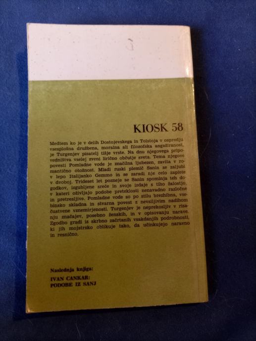 pomladne vode,avtor Ivan Sergejevič Turenjev,Drzavna založba Slovenije Ljubljana 1966 letnik, knjiga ima 155 strani, pošljem po pošti ali osebni prevzem.Knjiga je v zaboju pod zaporedno številko 42.
