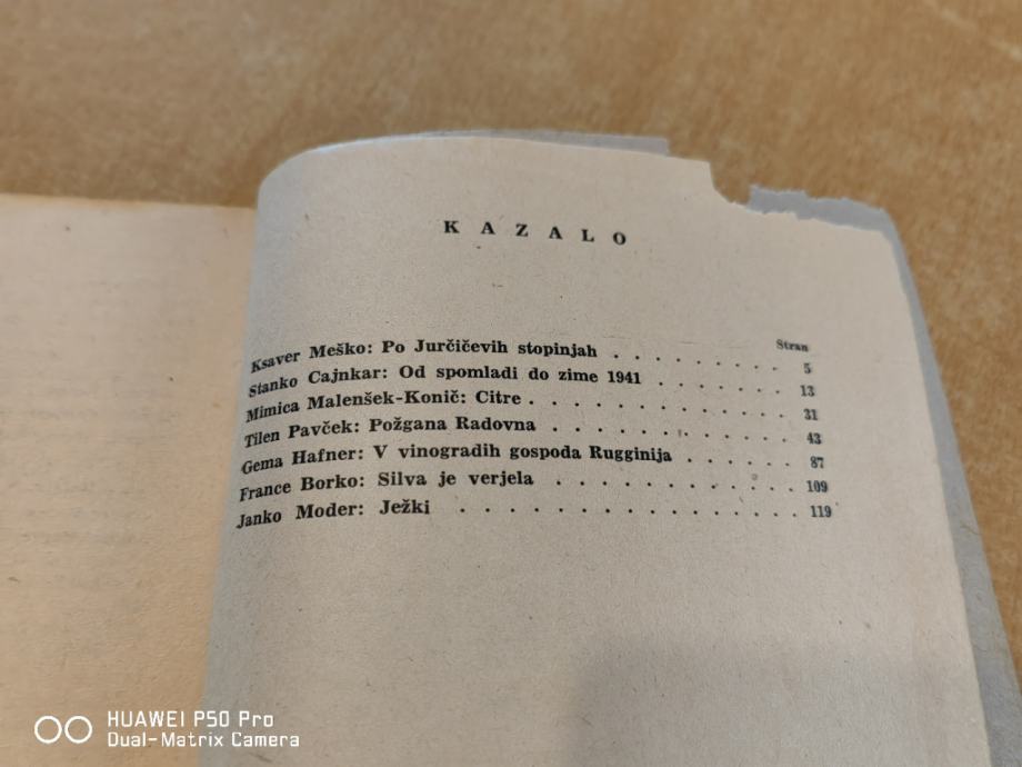 Vsebina Vsebina: Po Jurčičevih stopinjah / Ksaver Meško. Od spomladi do zime 1941 / Stanko Cajnkar. Citre / Mimica Malenšek-Konič. Požgana Radovna / Tilen Pavček. V vinogradih gospoda Rugginija / Gema Hafner. Silva je verjela / France Borko. Ježki / Janko Moder