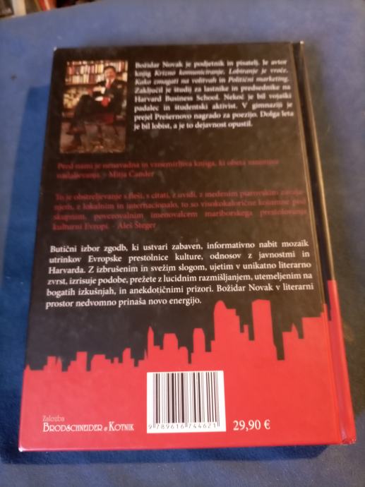 prestolnica(zgodbe o Evropski prestolnici kulture,Harvardu in odnosih z javnostmi),avtor Bozidar Novak,zalozba kms 2012 letnik, knjiga ima 188 strani, pošljem po pošti ali osebni prevzem.Knjiga je v zaboju pod zaporedno številko 100.