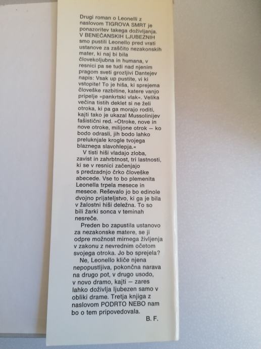Roman pisateljice Chabbert Rosy Tigrova smrt v trdi vezavi, ovitek malo poškodovan,
