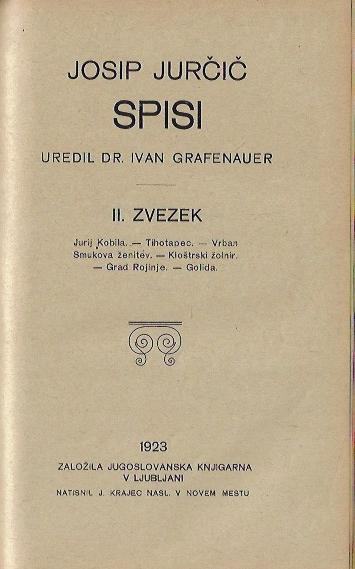 Naslov Spisi / Josip Jurčič ; uredil Ivan Grafenauer