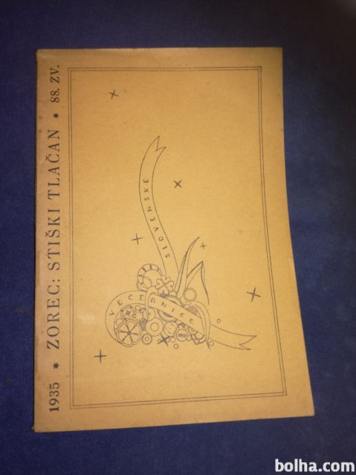 Stiški tlačan(povest,spisal Ivan Zorec,izdala in založila družba Sv.Mohorja 1935 letnik,knjiga ima 176 strani,pošljem po pošti ali osebni prevzem.