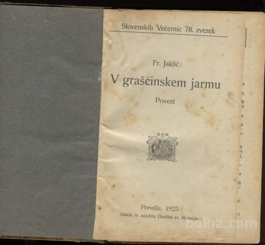 V graščinskem jarmu - Jaklič, Prevalje1925,143strani,7 eur